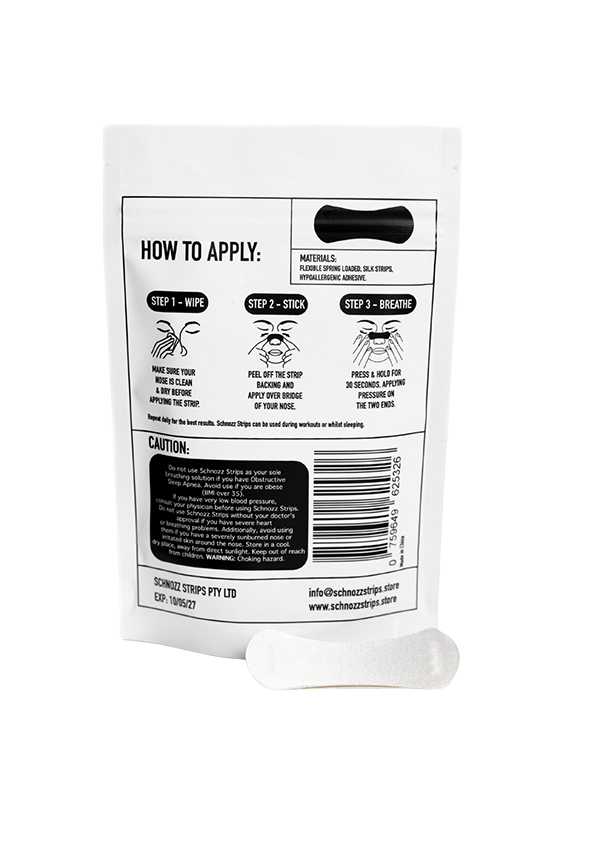 Schnozz Strips are soft, flexible adhesive bands that gently lift and support the nasal passages, helping to improve natural airflow through the nose. With their discreet, spring-like design, they’re comfortable to wear whether you’re sleeping, working out, or simply going about your day.