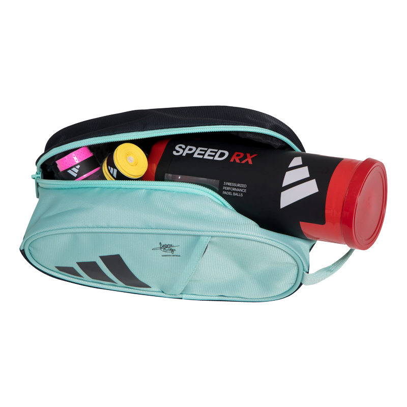 This bag, which features Martita Ortega’s signature, is ideal for storing the small accessories you need on the court, such as overgrips or wristbands. But it also allows you to leave your personal items in it once you get on the court. It has a larger main pocket and one on each side with zippers for smaller items.