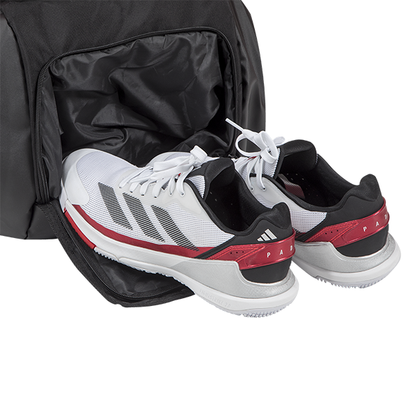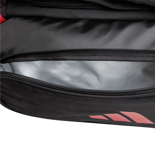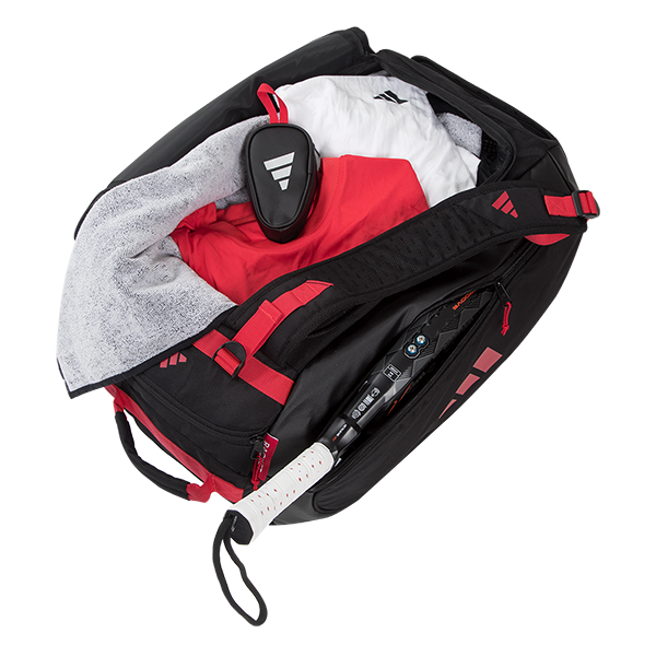 We present a spacious bag designed to meet all your padel match needs. Its large central compartment is perfect for carrying clothing and sports equipment. The two side pockets offer superior thermal insulation for your paddles, ensuring their protection. Additionally, it features a top pocket specifically designed for smaller personal items, keeping them organized and accessible. This bag combines functionality and comfort, making it the ideal choice for your team or clients.