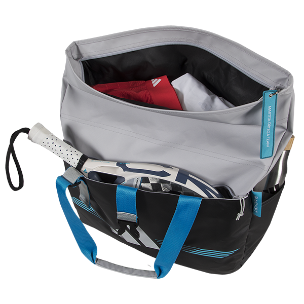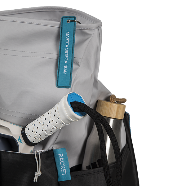 The new Weekend Bag by Martita Ortega is the ideal solution for your padel days. Its main compartment, designed for clothing and belongings, features a 'Rolltop' opening that allows you to adjust the size according to the volume you need. It includes two side pockets: one specifically designed for your racquet and another smaller one for personal items. Additionally, its sturdy base provides extra protection. Complete your style with the exclusive hangtag from Martita Ortega.