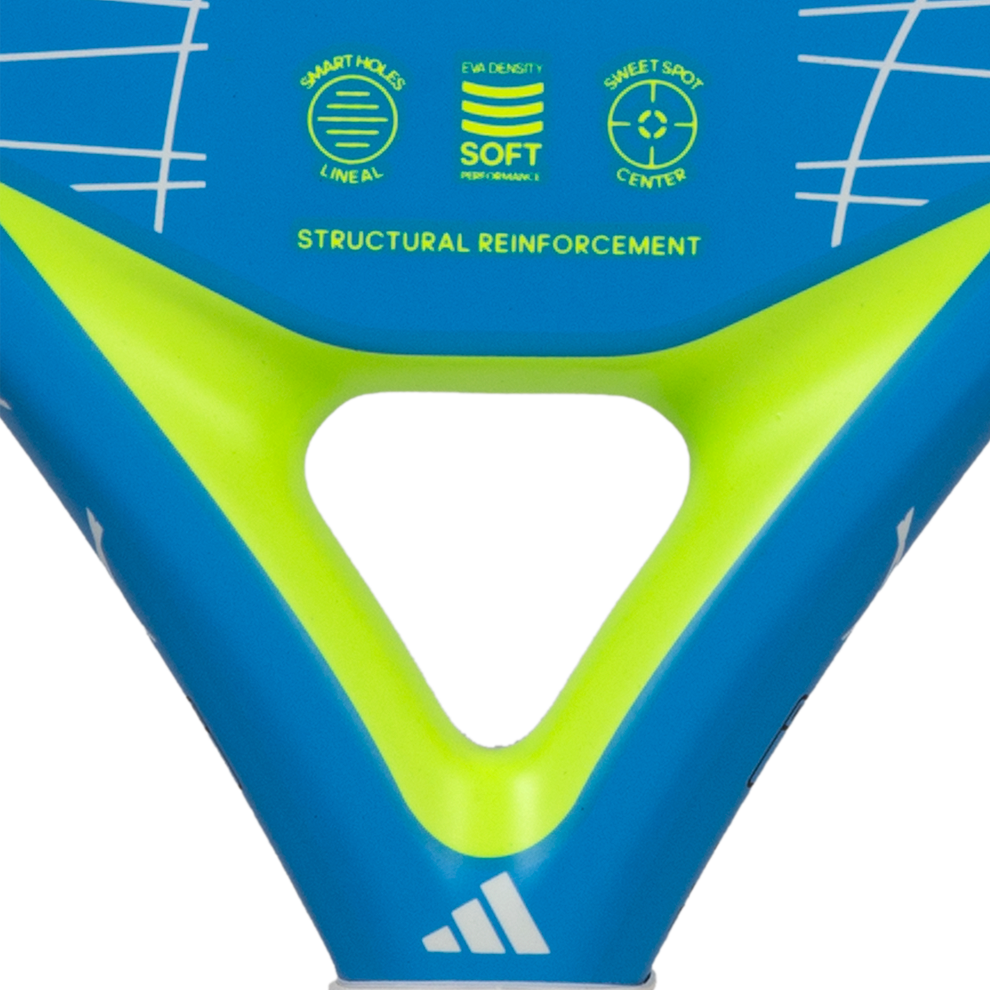 Every padel match is an opportunity to grow. For this purpose, this racket is the ideal choice, especially for beginner-level players. The combination of materials with Eva Soft Performance on the inside and Fiber Glass on the surface provides great maneuverability and unparalleled comfort. Structural Reinforcement allows reliable performance in the attacking game, and Smart Holes Lineal optimally arranges the holes for maximum durability of this racket.