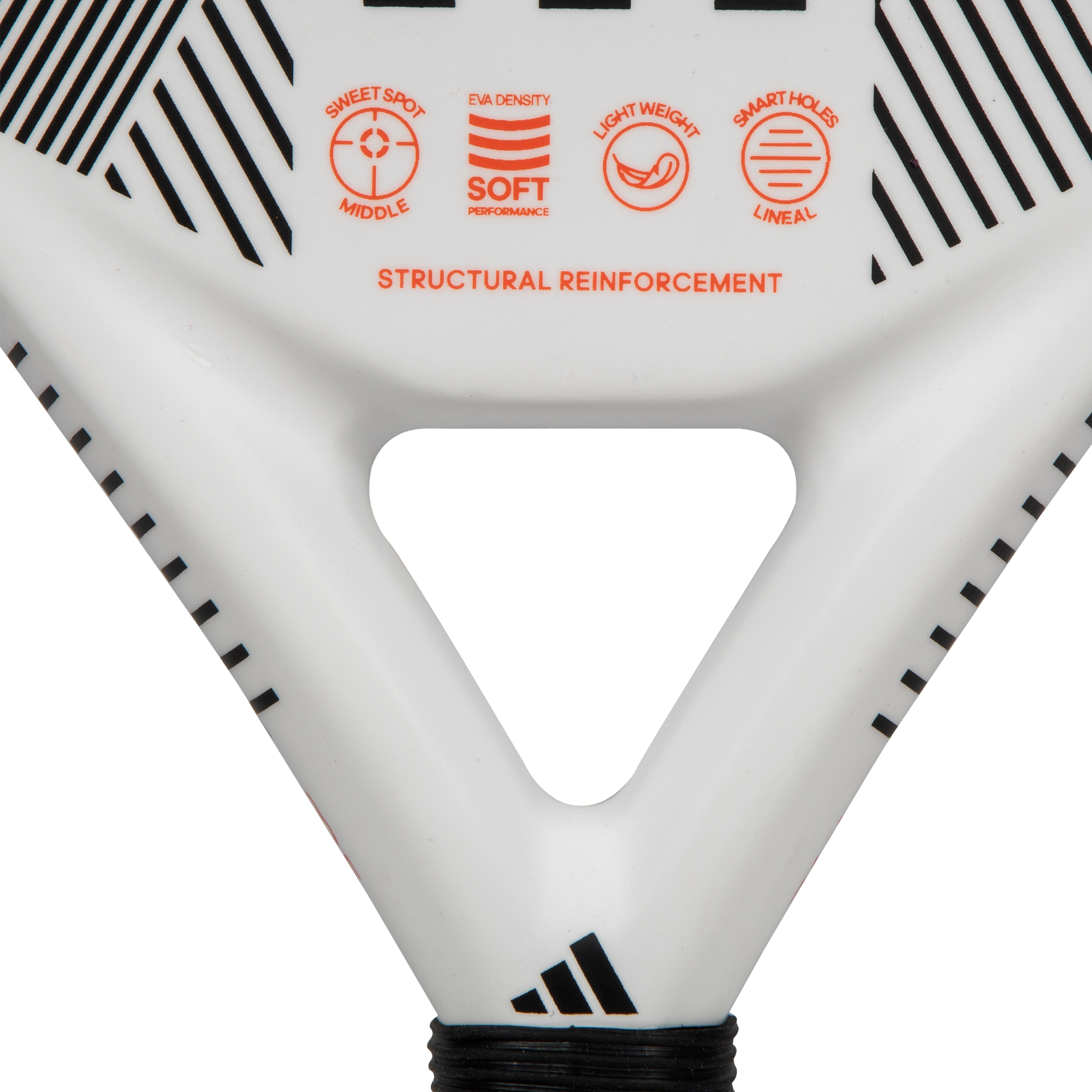 Lightness is a distinguishing feature. This racket is designed for players who prefer less weight in their hand, better maneuverability, or simply to lighten their arm. This choice is very interesting at beginner levels. Eva Soft Performance on the inside and Fiber Glass on the surface is a very interesting material combination. Comfort, maneuverability, and ball exit, all key factors in the learning stage, are guaranteed.