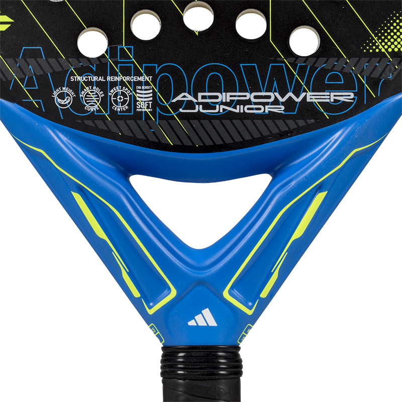 The Adipower Junior 3.4 is a model specifically designed for younger padel players. It aims to be the best playing companion for the youth. Its lightweight design enhances handling, while the extensive array of technologies—including the Dual Exoskeleton, Structural Reinforcement, and Smart Holes Curve—provides optimal performance for both control and aggressive play styles.