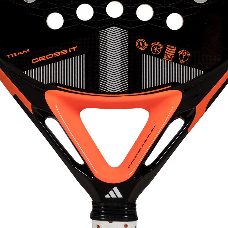 The Cross It Team is one of the two innovative models in the Cross It range. This racquet is designed for high-level players, featuring all the Cross It technologies and made from premium materials. The aerodynamic enhancement of Dynamic Air Flow improves handling, while the Power Extra Grip and 11 Thirteen hole arrangement increase power. Its diamond shape complements aggressive play, resulting in a well-balanced racquet.