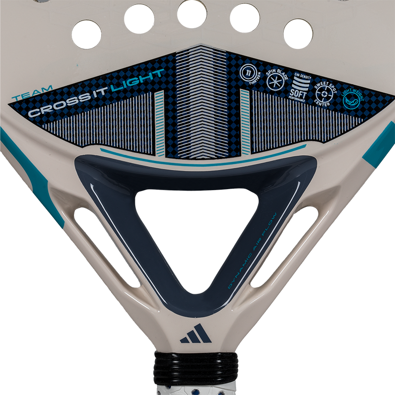 The Cross It Team Light is one of two innovative models in the Cross It range, distinguished by its lightweight design while maintaining all the essential features of Cross It. The Power Extra Grip and 11 Thirteen hole arrangement enhance its ability to deliver powerful shots. Meanwhile, the Dynamic Air Flow technology further improves manoeuvrability. Control and spin shots are also well catered for, thanks to the Spin Blade Decal texture.