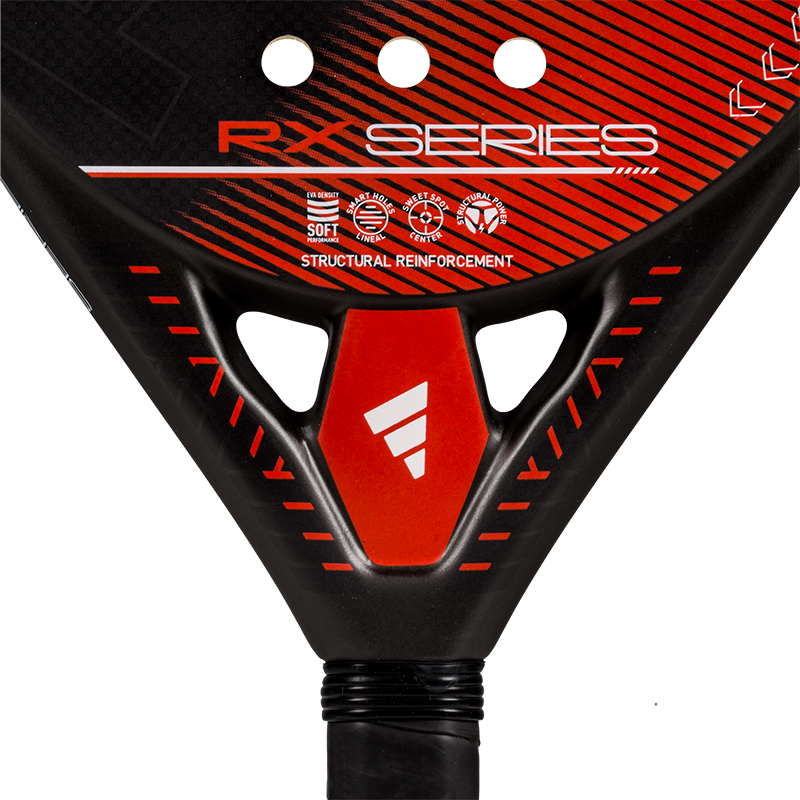 The RX Series Red 3.4 is an adidas racquet designed to meet the needs of a player in full progression. It combines balance with a compelling array of technologies that will elevate your game to the next level. The Structural Power and Structural Reinforcement reinforcements enhance its rigidity, making it shine in aggressive play. Additionally, the Smart Holes Linear hole arrangement is optimally designed to extend its lifespan.
