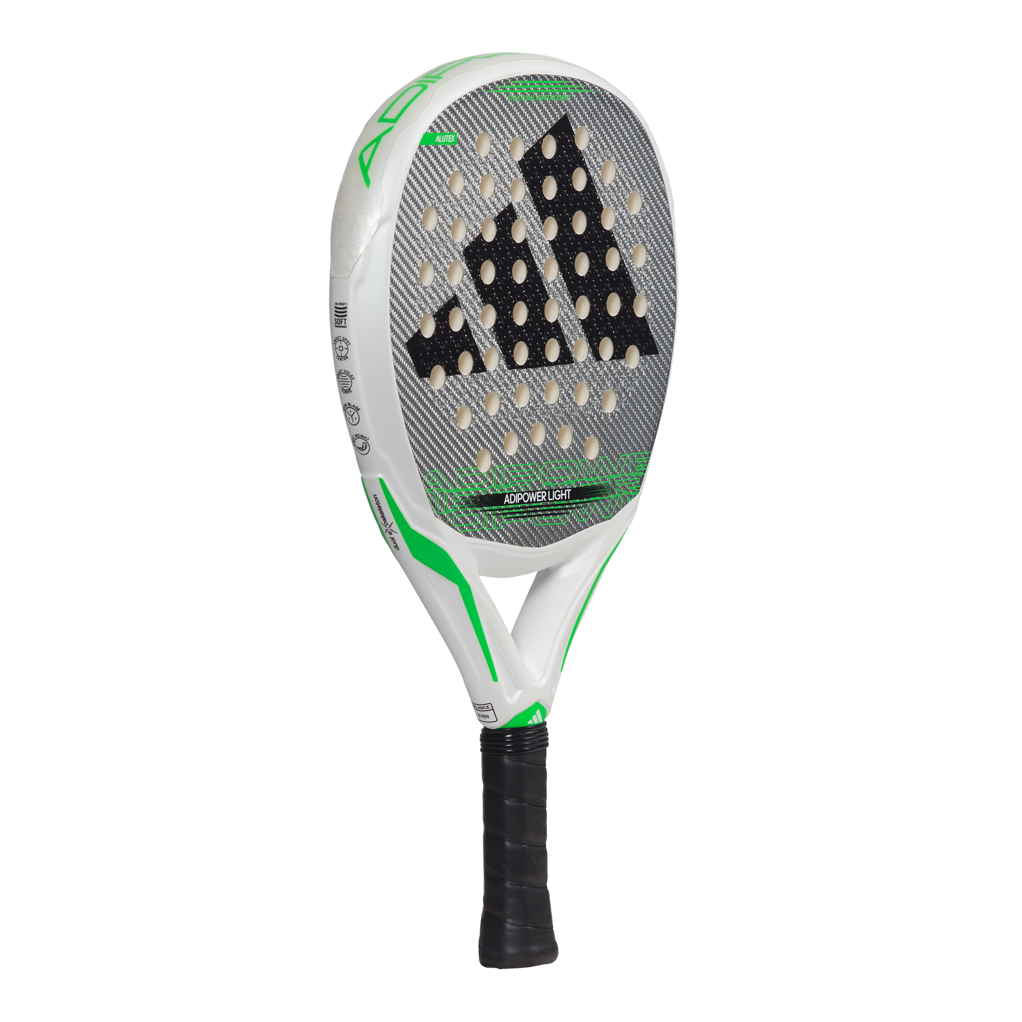 This racket combines the easy handling of a lightweight racket with a design for demanding players looking to achieve great control in their game. It features the Dual Exoskeleton, a double insertion of carbon ribs in the heart that provides greater rigidity. The Power Embossed Ridge reinforces the frame. Its Alutex fiber and Eva Soft Performance increase power, comfort, and durability. And the Spin Blade Mold technology offers exceptional spin effects.