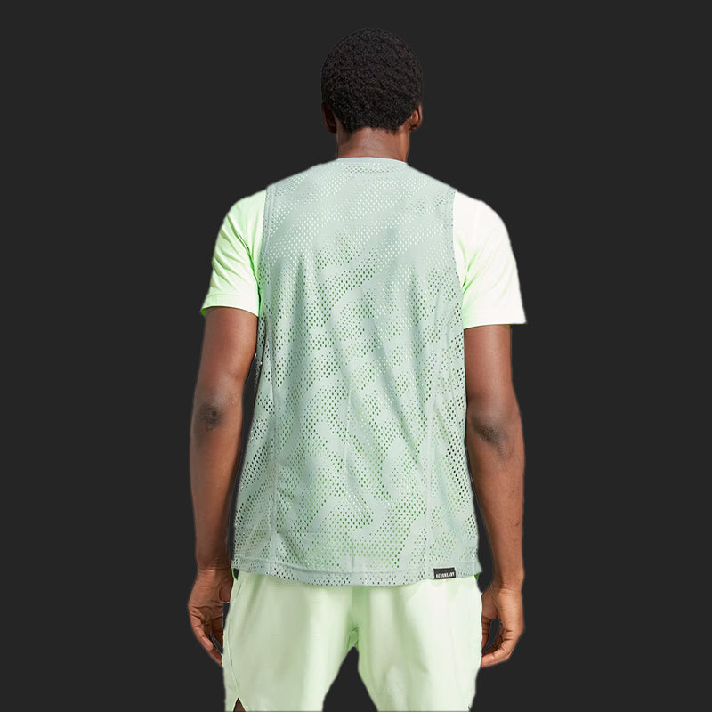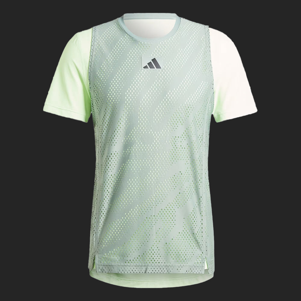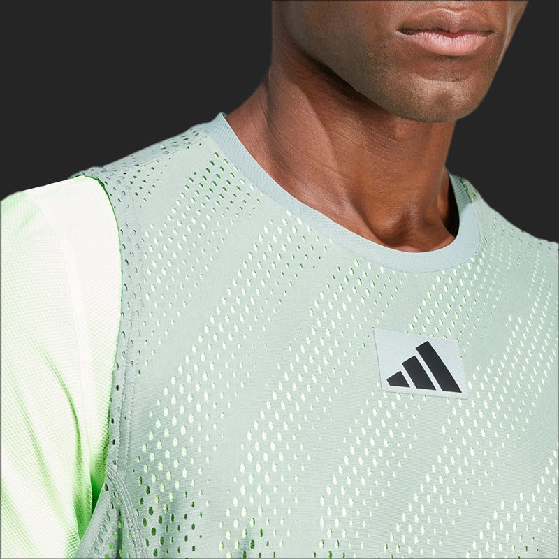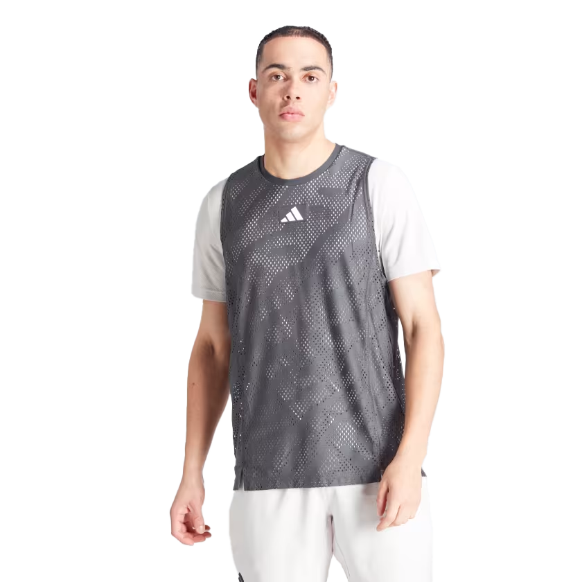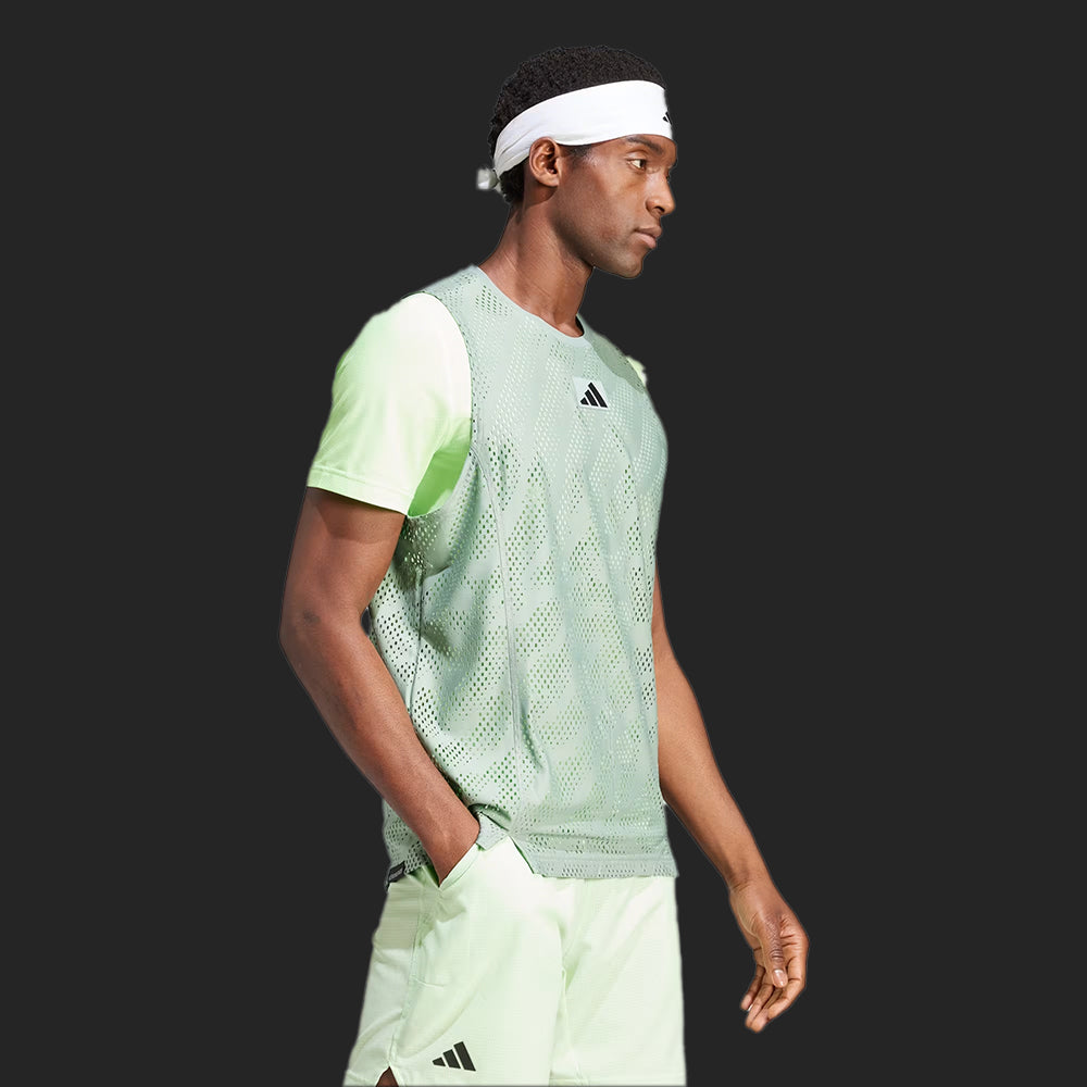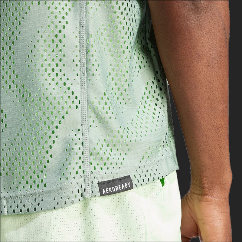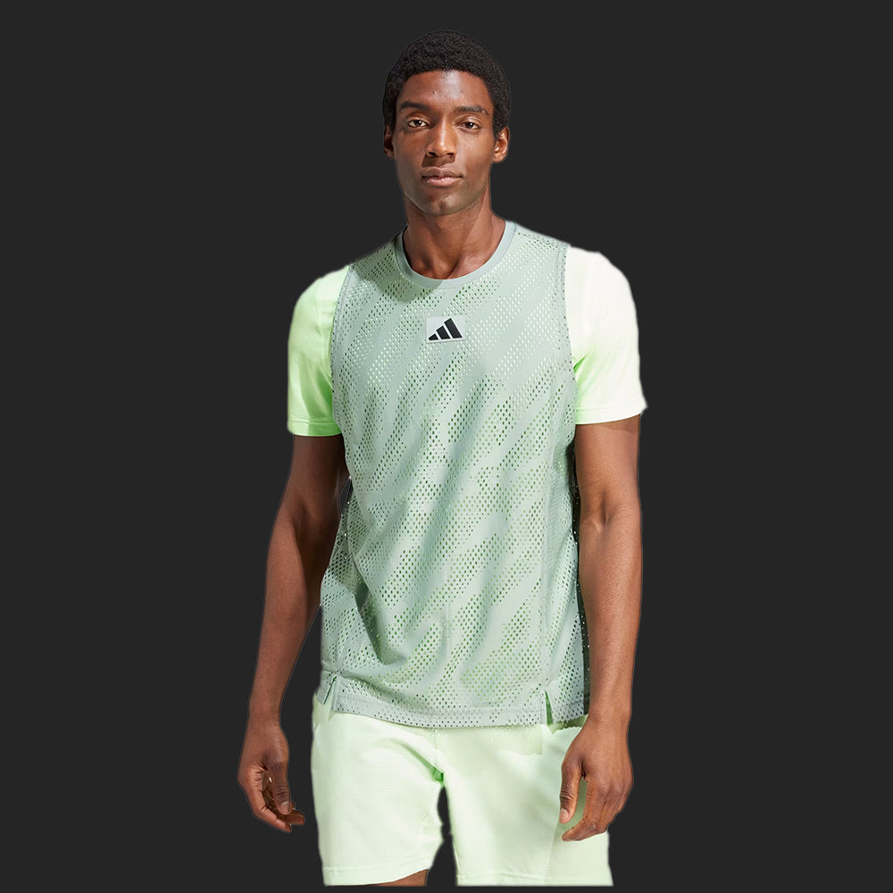 Stay calm when it's all on the line in a an adidas tennis tee designed for the southern hemisphere's biggest tournament. This t-shirt combines a slim-fitting baselayer with a sleeveless mesh overlay for maximum ventilation. Taken from nature and designed to calm the mind, the eye-catching pattern helps you focus on what matters. This product is made with 100% recycled materials. By reusing materials that have already been created, we help to reduce waste and our reliance on finite resources and reduce the footprint of the products we make.