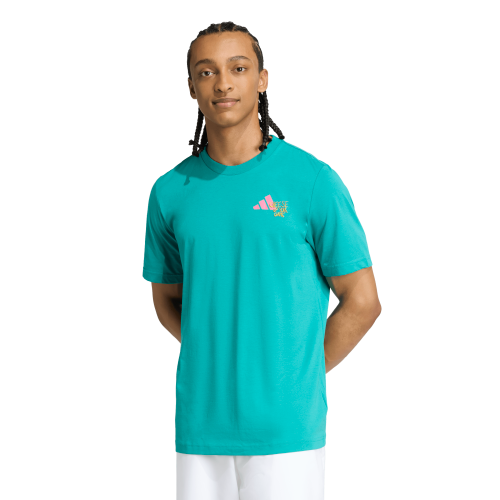 Inject energy and attitude into the padel court with this adidas t-shirt. It features a playful graphic on the back that leaves no doubt about your devotion to the sport. The CLIMACOOL technology wicks away sweat to keep your body cool and dry, and your mind free from distractions. Plus, its soft fabric makes it perfect for action on the court.