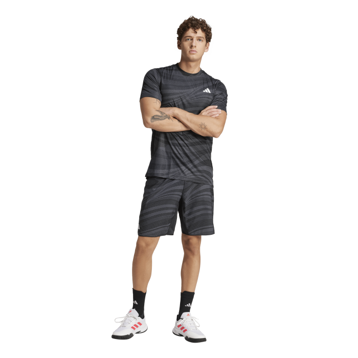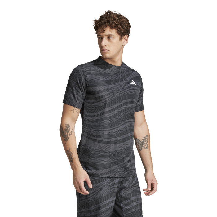 Bring your style to the court in this Club padel tee. Clad in a bold all-over graphic inspired by the adidas Melbourne collection, this crewneck top was created to enhance your overhead game with its shoulder-freeing FreeLift design. CLIMACOOL wicks and disperses sweat for cool, dry and distraction-free performance.