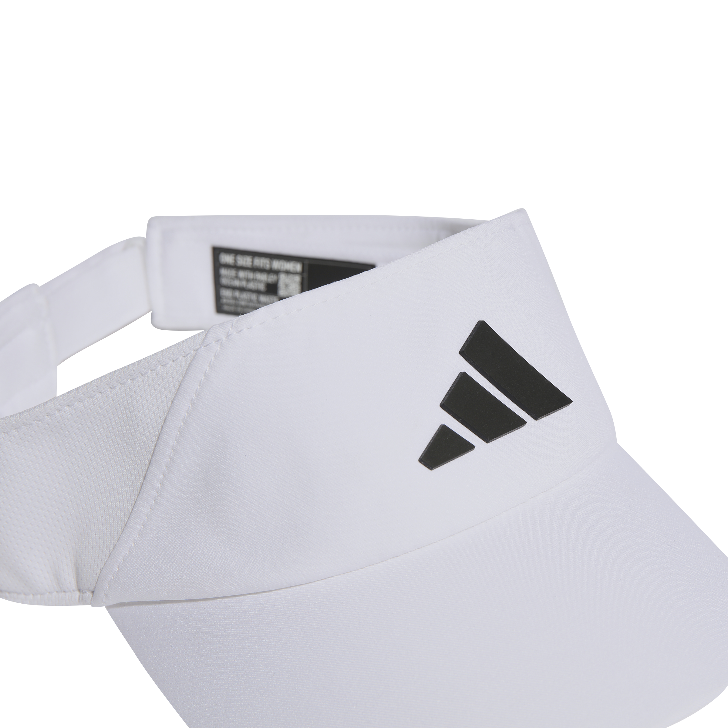 This adidas visor is perfect for the court, the range and the running track. Moisture-absorbing AEROREADY keeps you dry and comfortable, while the curved visor shades your eyes. The raised silicon logo adds a sporty touch. This product is made with a yarn which contains 50% Parley Ocean Plastic — reimagined plastic waste, intercepted on remote islands, beaches, coastal communities and shorelines, preventing it from polluting our ocean. This garment contains at least 70% recycled content in total.