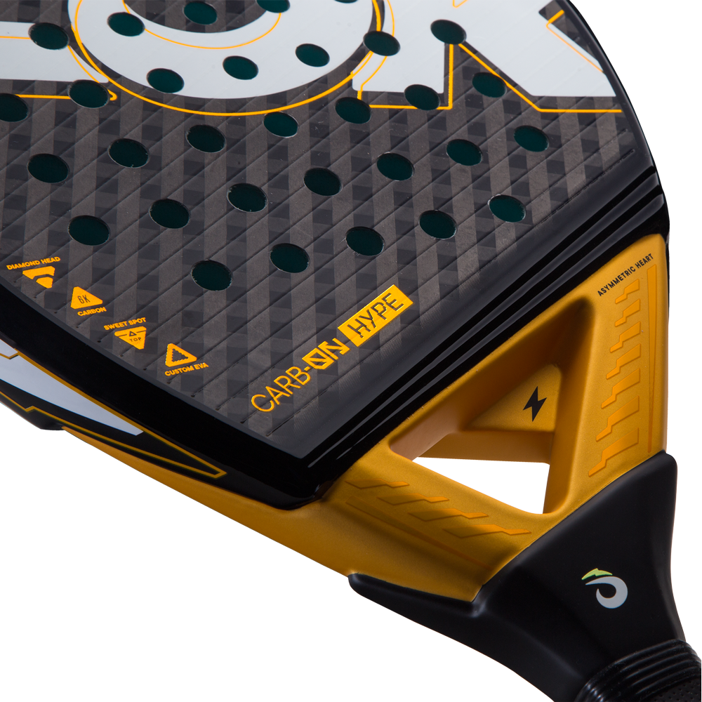 The Carb-On Hype racket is a cutting-edge choice for skilled padel enthusiasts, offering an ideal blend of power and precision. Its innovative design