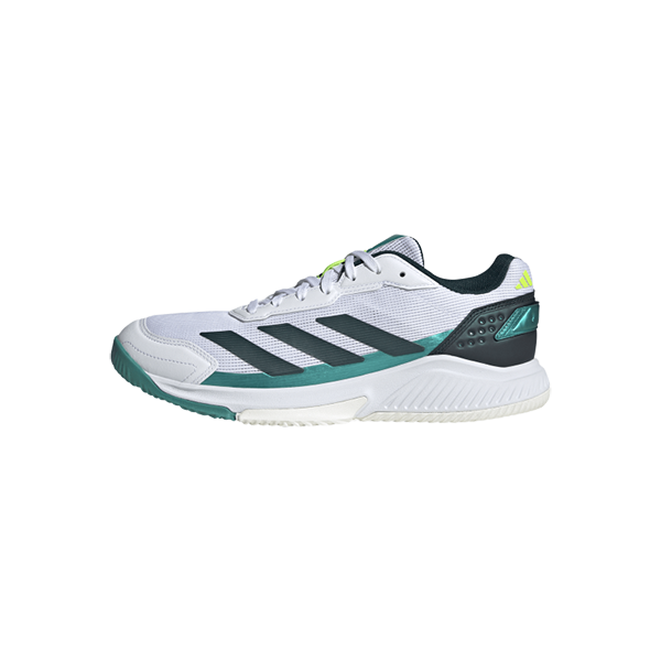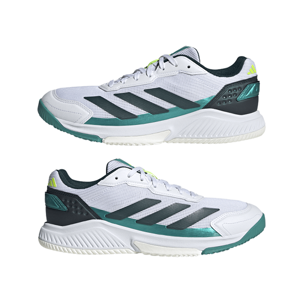 To dominate on the padel court, you need to be quick on your feet. That's why these adidas Courtquick shoes team a lightweight textile upper and stabilising Slingframe construction to support rotational movements and quick transitions. The combination of a flexible Bounce midsole and Cloudfoam padding ensures you stay on the front foot. This product features at least 20% recycled materials. By reusing materials that have already been created, we help to reduce waste and our reliance on finite resources and reduce the footprint of the products we make.