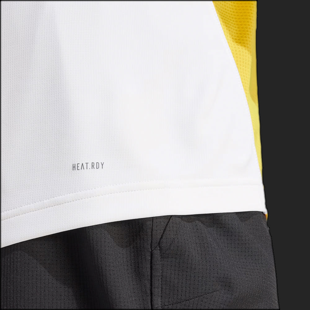 Maintain your intensity on the court during hot and humid conditions. This adidas t-shirt is made with HEAT.RDY to keep you cool and energized when the sun's beating down. Designed for players who don't stop, this tee offers unrestricted range of motion through the arms and shoulders so you can crush forehands and chase down drop shots. This product is made with 100% recycled materials. By reusing materials that have already been created, we help to reduce waste and our reliance on finite resources and reduce the footprint of the products we make.