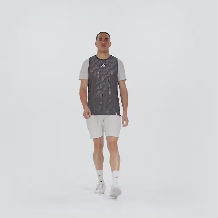 Stay calm when it's all on the line in a an adidas tennis tee designed for the southern hemisphere's biggest tournament. This t-shirt combines a slim-fitting baselayer with a sleeveless mesh overlay for maximum ventilation. Taken from nature and designed to calm the mind, the eye-catching pattern helps you focus on what matters. This product is made with 100% recycled materials. By reusing materials that have already been created, we help to reduce waste and our reliance on finite resources and reduce the footprint of the products we make.