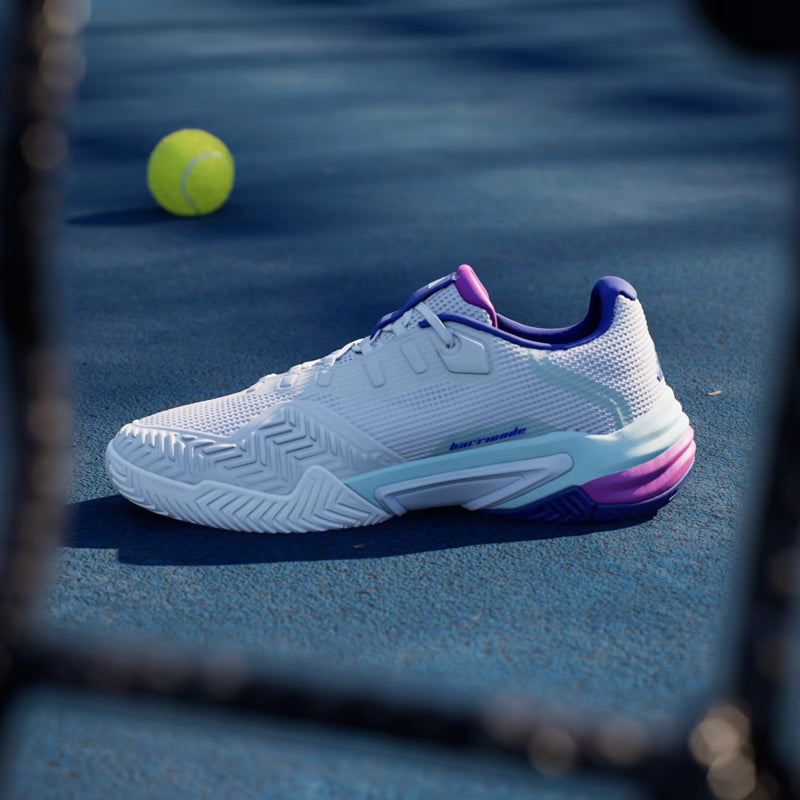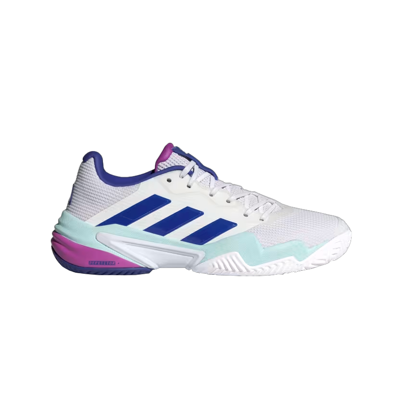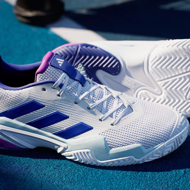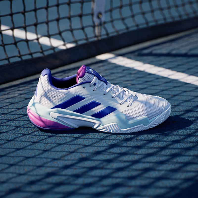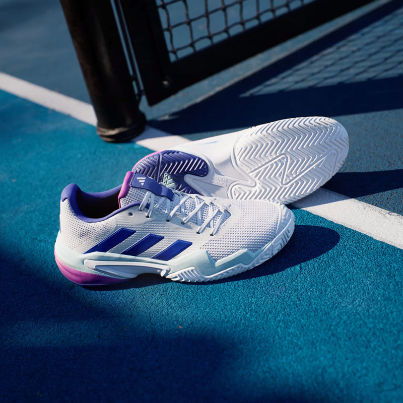 Take control of the court in these adidas Barricade shoes. Torsion System provides match-turning stability, while the asymmetric lacing locks you in for quick cuts and slides. A REPETITOR midsole adds support and smooth transitions from one step to the next. Geofit Sensepods follow your heel's natural shape, ensuring comfort and support that lasts through to match point. This product features at least 20% recycled materials. By reusing materials that have already been created, we help to reduce waste and our reliance on finite resources and reduce the footprint of the products we make.