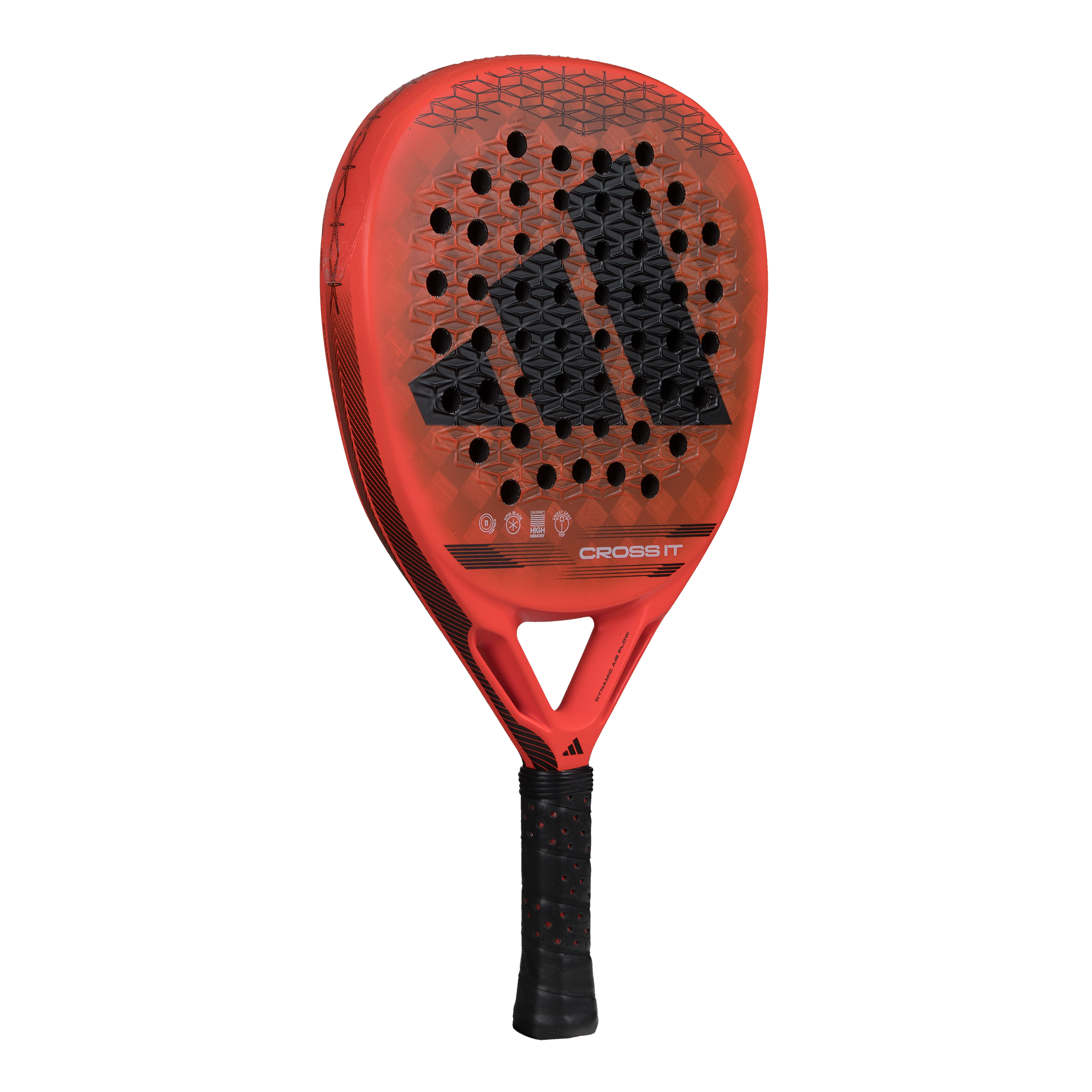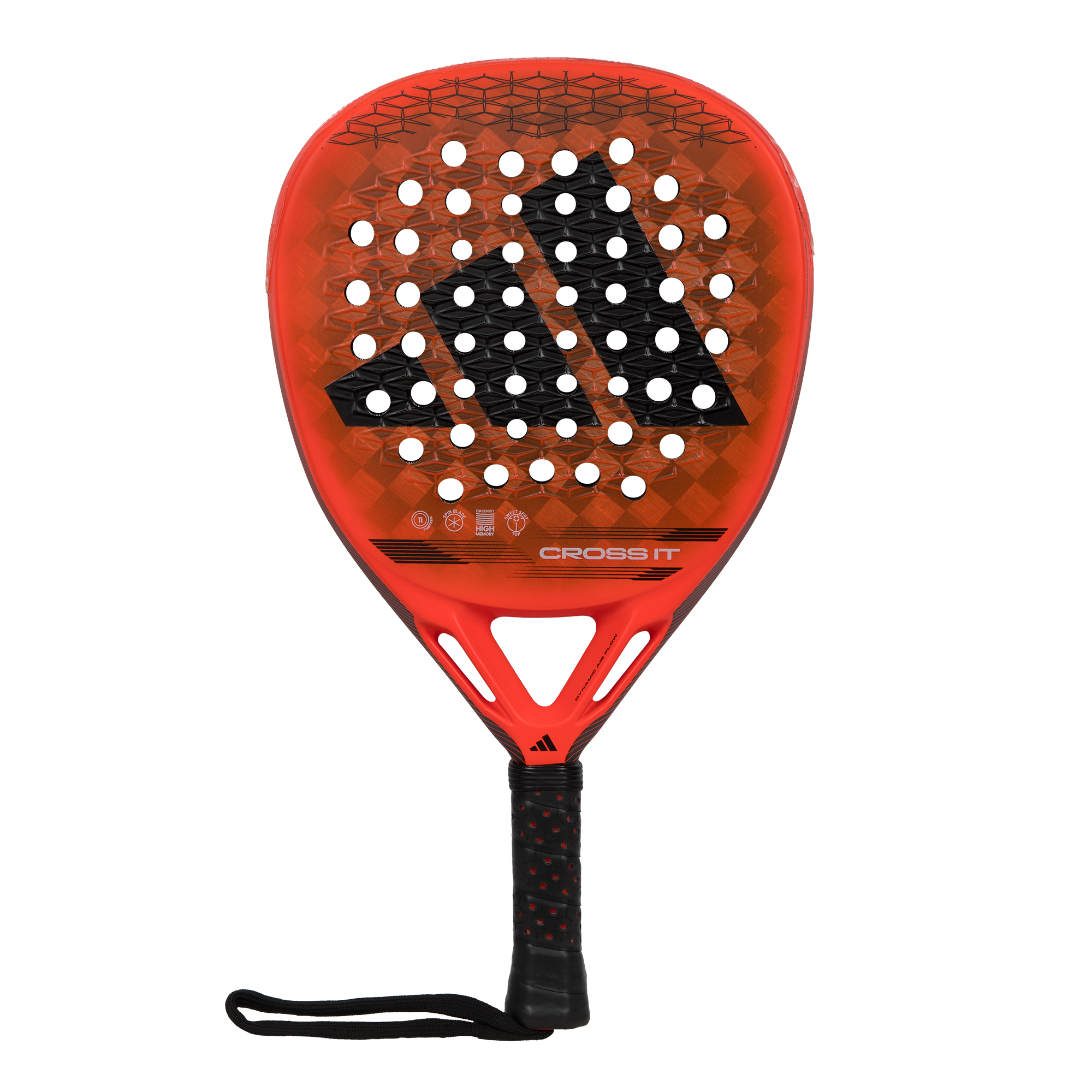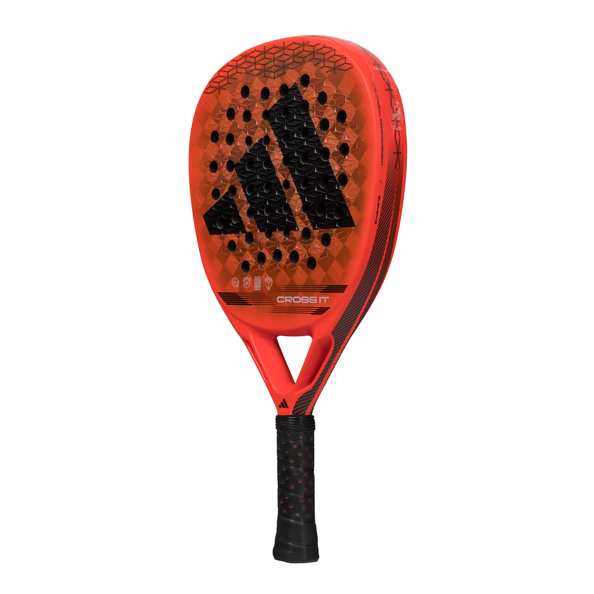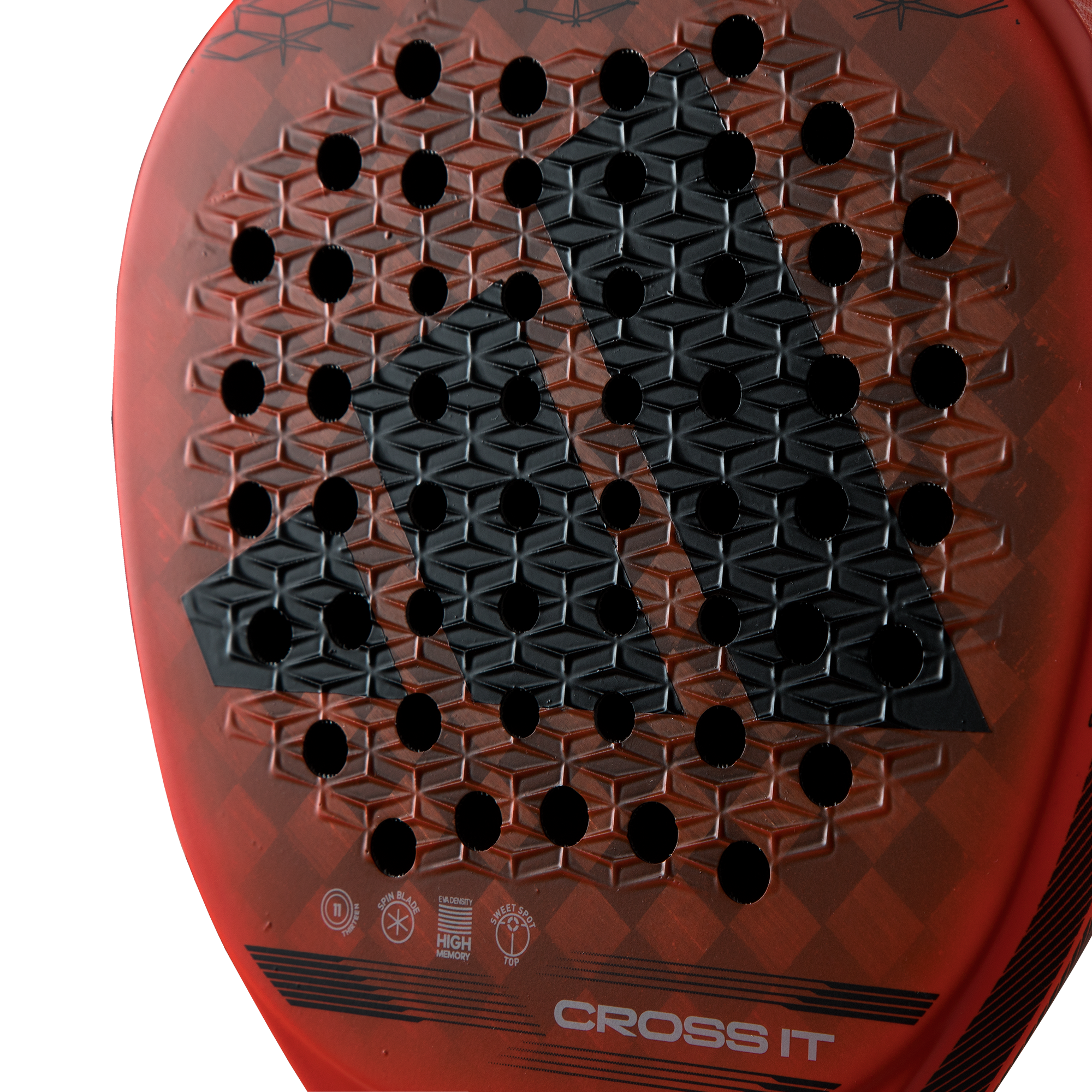 The new Cross It brings the most innovative technology to the court. The evolution of the best technologies in your hands. The Dynamic Air Flow system optimizes your shots by improving air flow and reducing resistance, delivering exceptional performance in every movement. The Extra Power Grip, with its extended handle and balance shifted upwards, provides unparalleled power. The pioneering design of 11 Thirteen holes enhances durability, power, and performance in the attacking game. The combination of Aluminized 15K carbon fiber and Eva High Memory, of higher density, enhances each of your shots. With Cross It, take your game to the next level.