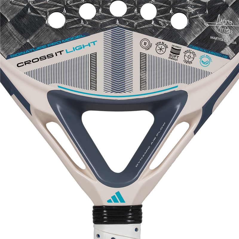 The Cross It Light is the new racquet of Marta Ortega, featuring the best elements of Cross It in a lightweight design. Its reduced weight enhances handling, while the advanced technologies and materials elevate both aggressive and control play to the highest level. The Power Extra Grip provides excellent inertia, and the rigidity from the 11 Thirteen hole arrangement ensures powerful shots. Additionally, the Dynamic Air Flow technology enhances manoeuvrability, making this racquet a perfect blend of lightness and performance excellence.