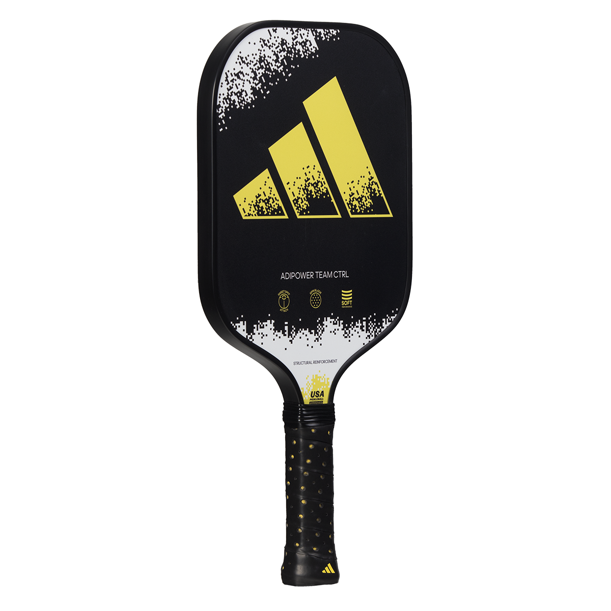 The Adipower Team CTRL is a racket that guarantees the best handling on court and incorporates some of the best adidas technologies brought to pickleball yet. With it in your hand you will feel a combination of balance, comfort, and the ability to handle every rally in the best way. This racket is made to respond to all situations and is designed for players of all levels – from beginners through to advanced. It is therefore the perfect option which to evolve and improve your game. The Structural Reinforcement technology increases its stiffness for better performance on powerful shots. The rough coating on the surface of the Spin Blade Max gives you the best spin options. The white, black, and yellow design, simple but attractive, responds to what this Adipower Team CTRL is, an easy to play racket with great capabilities.