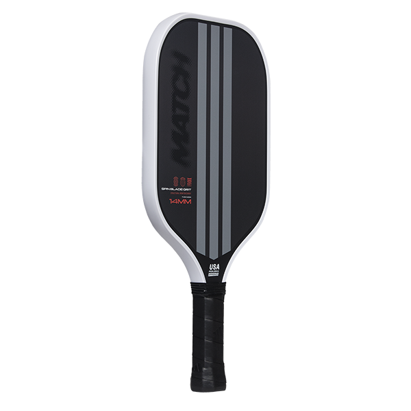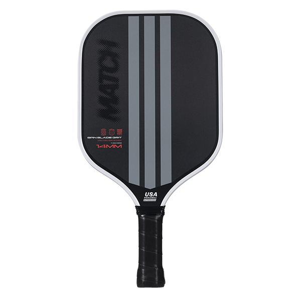 The MATCH is a versatile pickleball paddle, specially designed for intermediate players who seek the perfect balance between control, power, and comfort. Its balanced design and fiberglass surface offer a smooth and comfortable feel, ideal for those looking to improve their game without sacrificing precision. With its all-round shape and centered sweet spot, this paddle makes it easier to handle and place shots on the court, enabling a smoother and more effective game. The 14 mm thickness provides a combination of stiffness and power, allowing for powerful shots without compromising control. Additionally, its textured surface maximizes spin, offering greater effect on every shot.