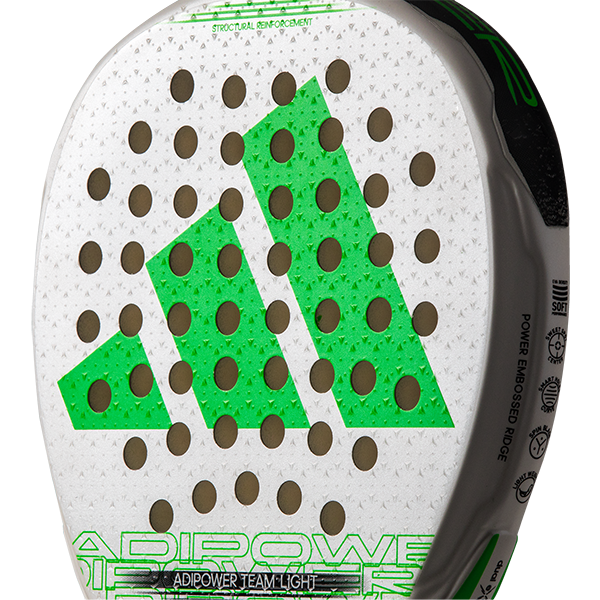 The ADIPOWER TEAM LIGHT stands out as a racket designed for high-level players who prefer to carry less weight. Its technologies and lower weight make it a very attractive choice for this profile. The Fiber Glass and the EVA Soft Performance rubber reinforce its handling capacity, feel, and ball output. The Spin Blade Decal technology, a rough layer on the surface that favors the creation of spin, is added to all these other characteristics. It has a round shape for easy control. However, it also features technologies to excel in terms of power. The Dual Exoskeleton and the Power Embossed Ridge improve stiffness and complete an outstanding racket in all aspects.
