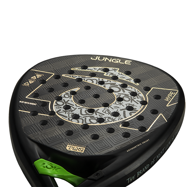 Unleash your wild side with the JUNGLE — a pro-level padel racket made to dominate every match. Featuring the evolved Asymmetric Heart EVO for perfect balance and stability, this racket blends raw power with surgical precision. Built with high-grade C18 Carbon and Dynamic Holes System technology, it amplifies energy transfer while reducing vibration. The 3D Spin Lines surface lets you shape every shot with spin and confidence, while Carbon Reinforcements enhance structure and durability. Finished with a Comfort Wristband for a flawless grip, the JUNGLE is where elite control meets untamed energy.