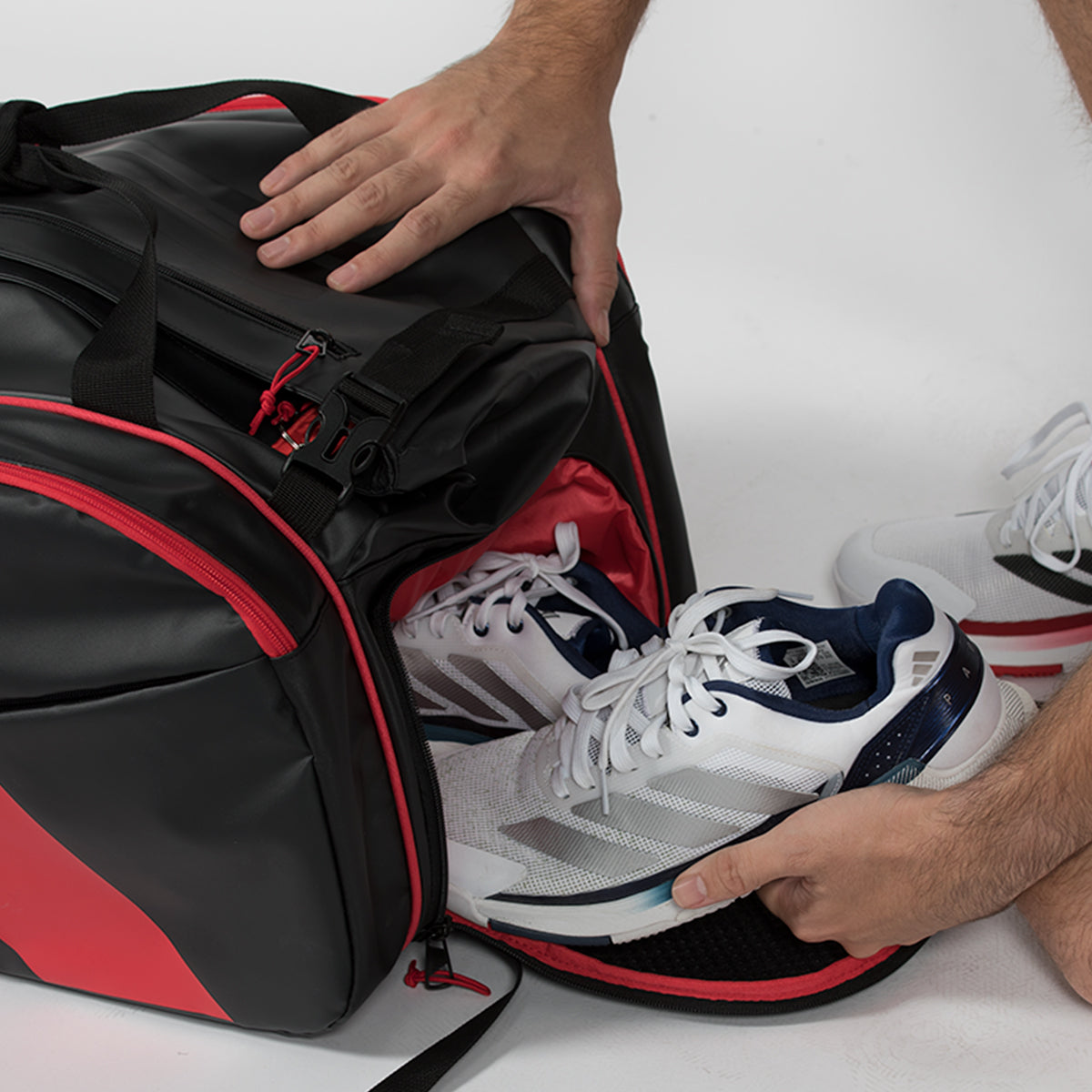 The exterior racket compartment incorporates a semi-rigid, thermo-insulated structure engineered to hold your racket securely in place. This design helps shield it from temperature fluctuations while preserving performance consistency.